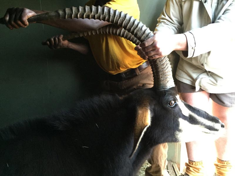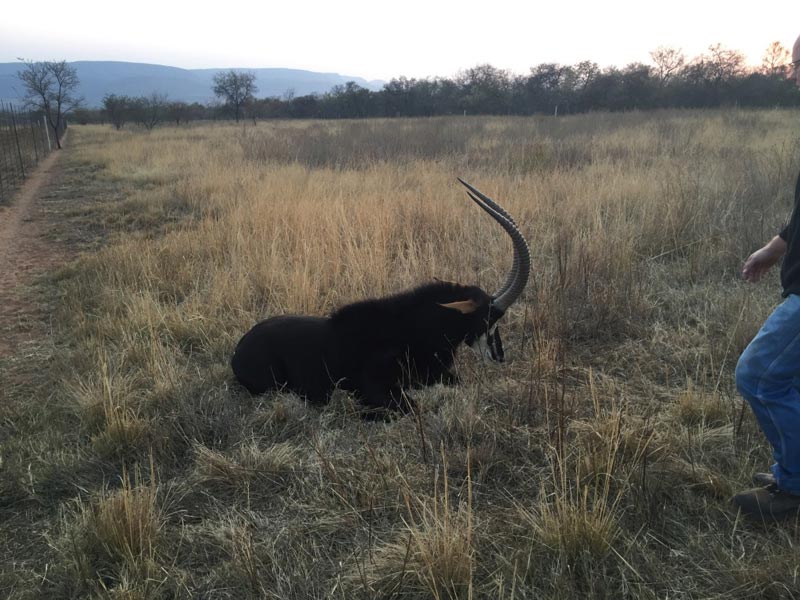 Sable BreedingThe vet woke him up and he seemed very relaxed, I then made the short journey to our farm +-8km away. We stopped at a nice open clearing and opened the door. He came out the door with a bang and soon he settled in his dressage like trot away from us. He stopped around 80 yards away and looked back at us. That was a great feeling.